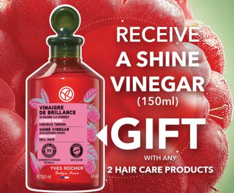 Receive a complimentary Shine Vinegar (150 ml) with any two hair care products.